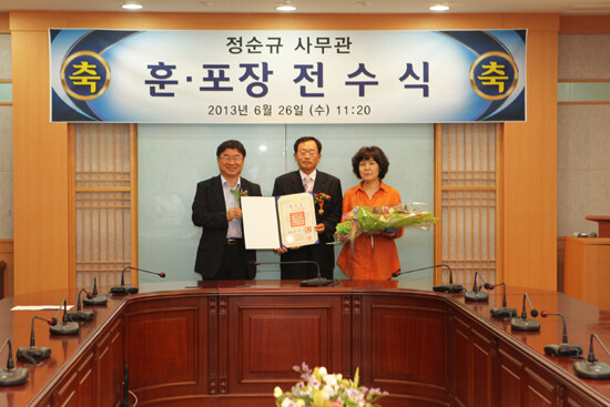 이날 훈포장 전수식에는 권순기 총장을 비롯해 대학본부 보직자, 직장협의회 임원, 직원협의회 임원, 동료 교직원 등 50여 명이 참석해 정순규 사무관의 정년을 축하했다.
