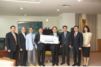 기금 협약식은 지난 5일 오전 10시 30분 교내 총장실에서 오연천 총장과 김종준 은행장을 비롯해 이창우 발전기금 부이사장과 경영대학 김병도 학장 등 주요 인사가 참석한 가운데 열렸다.