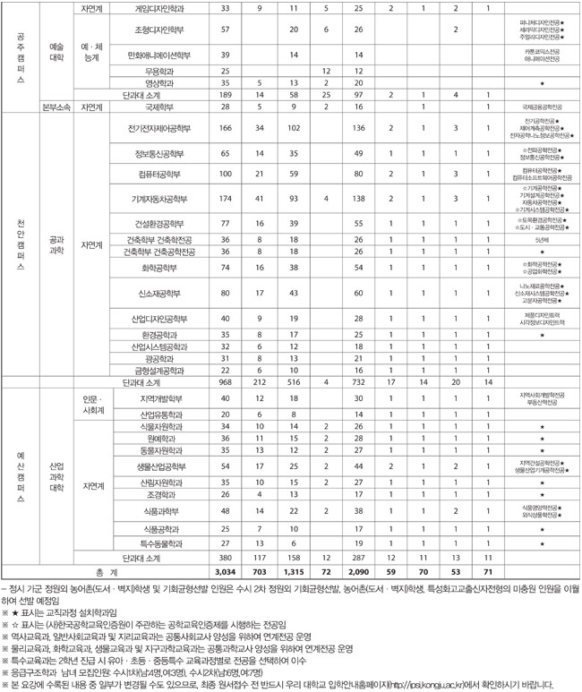 3개의 캠퍼스를 갖추고 있는 충남 유일의 국립대학교