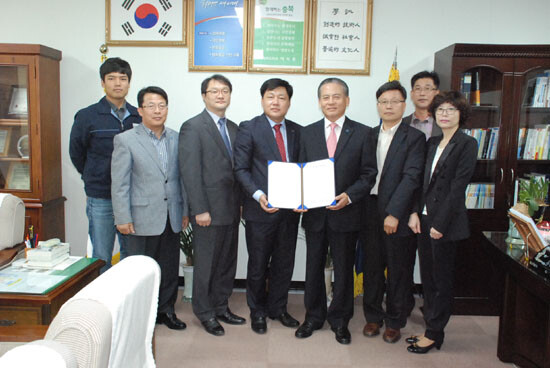 10일 충북도립대 총장실에서 열린 협약식에는 충북도립대 연영석 총장과 컴퓨터정보과 학과장 김평중 교수, 김현호 기획협력과장과 부강이엔에스(주) 박규식 대표이사, 김병관 연구소장, 한만형 연구원 등이 참석했다.