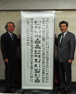 류 교수는 '언제나 마음 속에 대학의 발전을'이라는 제목으로 이은상 시인의 애국시와 함께 담아냈다. 국선지 60호(93.6 x 63.7) 규모다.