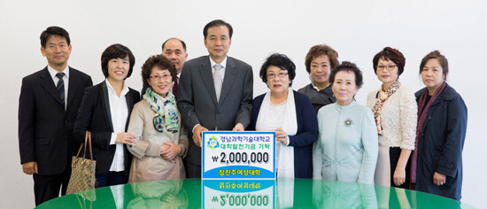 이날 전달식에는 권진택 총장 및 보직교수, 참진주 여성대학 박금자 총동창회장 등 10명이 참석했다.