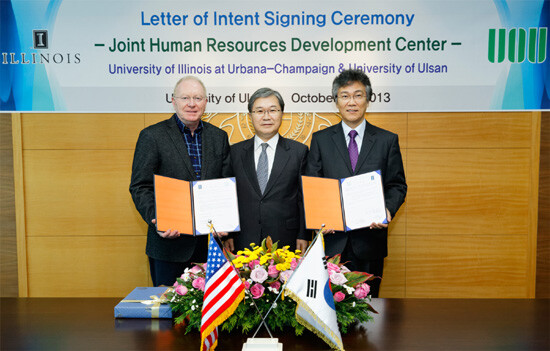 일리노이대 로날드 제이콥스(Ronald L. Jacobs) 교수는 30일 울산대를 방문, 최원준 산학협력부총장과 HRD센터 설립을 위한 의향서에 서명했다.