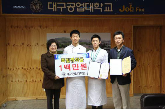'제48회 전국 기능경기대회'에 출전한 호텔외식조리계열 이재광(금메달), 장효식(은메달) 씨, '인터내셔널 메이크업 아트페어'에 참가한 뷰티아트디자인계열 편수진(그랑프리/서울특별시장상) 씨에게 장학금 100만 원이 각각 지급됐다.