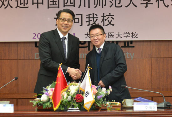 대표단은 14일 대구한의대를 방문, 대학의 글로벌화와 학생교류 추진 등에 대해 협의했다. 중국 사천성 성도시에 위치한 사천사범대는 사천성 내 사범계열대학 중 최대의 역사와 전통을 지닌 명문대다. 대구한의대와는 매년 복수학위와 현장학습단 등의 학생교류를 진행하고 있다. 특히 2006년부터는 복수학위제도도 시행하고 있다.
