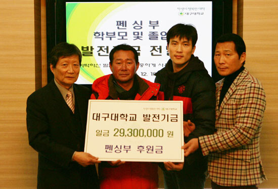 이날 전달된 발전기금은 학생 장학금과 펜싱부 후원금으로 활용된다.