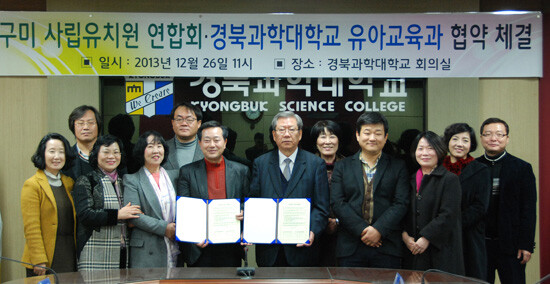 이날 협약으로 경북과학대는 숲 유치원으로 유명한 구미 사립유치원연합회(53개 유치원)에 우수한 졸업생을 우선으로 취업을 시키기로 했다. 이에 연합회는 양질의 교육을 위해 현장실습의 기회를 재학생들에게 제공하기로 했다.