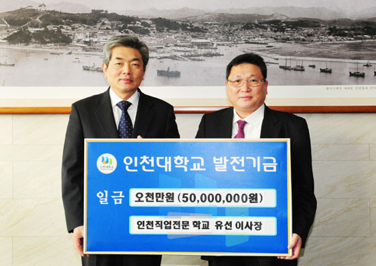 이에, 최성을 인천대 총장은 “유 이사장의 인천대에 대한 애정과 지속적인 발전기금 기부를 감사드린다”며 “지속적인 대학 개혁을 통해 국가와 시민들의 기대에 부응하는 자랑스런 인천대를 만들어 보답하겠다”고 전했다.