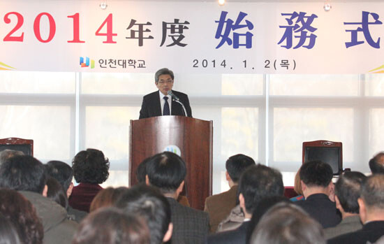 인천대는 2일 오전 11시 교수회관 1층 다목적실에서 최성을 총장 등 교직원 250여 명이 참석한 가운데 “2014년 시무식”을 개최했다.