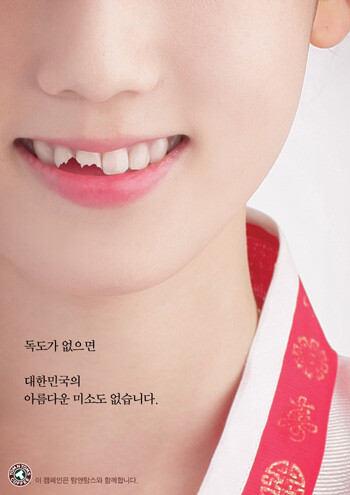 독도의 소중함을 알리고 싶었다는 이 팀은 독도의 소중함을 어떻게 표현해야 할지 고민하던 중 ‘완벽한 것에 하나가 빠지면 그것이 부각되어 보인다는 점’을 착안했다. 한복입은 여자로 대표되는 대한민국의 미소에 부서진 이를 독도에 견주어 표현, 독도의 소중함을 강조했다.