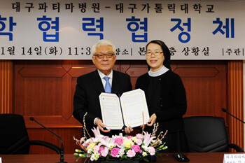 이날 협약에 따라 대구가톨릭대는 의대, 약대, 간호대 등 의·약 전공 학생들이 대구파티마병원에서 수련이나 실습을 하는 등 활발한 교류와 협력을 기대하고 있다.