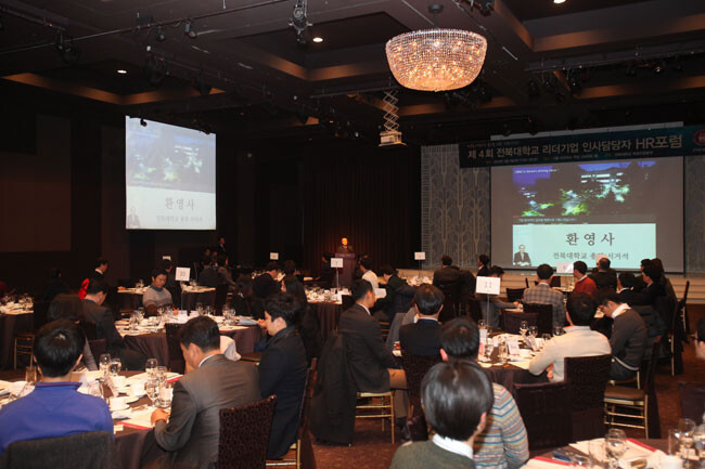 전북대는 대학의 경쟁력과 졸업생들의 우수성을 적극적으로 알리기 위해 4일 오후 서울 역삼동 아모리스홀에서 국내 50여 개 리더기업 인사담당자들을 초청해 '제4회 리더기업 초청간담회'를 개최했다.