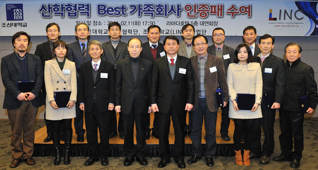 조선대학교 산학협력단(단장 차용훈)과 LINC사업단(단장 이행남)은 11일 오후 라마다프라자 광주호텔에서 '산학협력 성과발표회 및 가족회사 교류회'를 열고 총 510개의 산학협력 가족회사 중 산학협력 실적이 특히 우수한 (주)엠시스템즈, 주식회사 지오플랜, (주)디엠이테크 등 15개사를 '산학협력 베스트 가족회사'로 선정해 인증패를 수여했다.