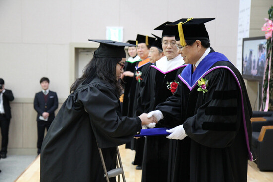 지난 19일 강원대에서 열린 학위수여식에 참석한 사회복지학과 황미연 씨가 그 주인공이다. 황 씨는 항상 목발을 짚고 학교에 다녀야 하는 불편함을 감수하고 일반 초·중·고등학교를 거쳐 지난 2010년 사회복지학과에 입학했다.