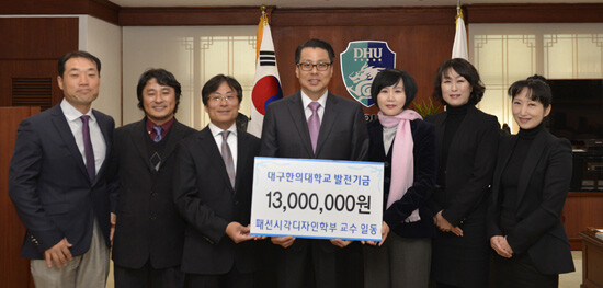 패션시각디자인학부 민경혜 학부장은 27일 대학본부 변창훈 총장을 방문, 급변하는 대학환경변화에 학부경쟁력을 제고하고 제자들의 장학금을 위해 써달라며 1300만 원을 전달했다.