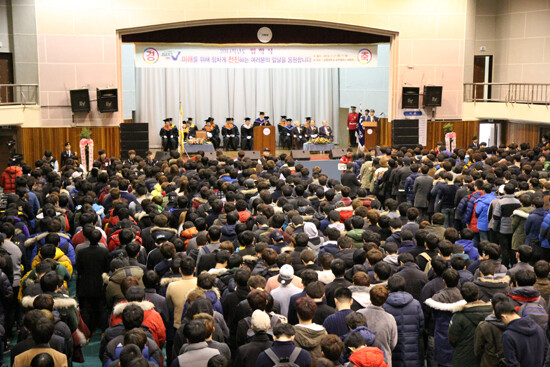 이날 입학식에는 삼척캠퍼스 1030명, 도계캠퍼스 762명 등 총 1792명의 신입생이 참석했다. 특히 성적우수자인 삼척캠퍼스 자동차공학과 이승은, 도계캠퍼스 간호학과 전혜원 씨에게는 장학증서가 수여됐다.