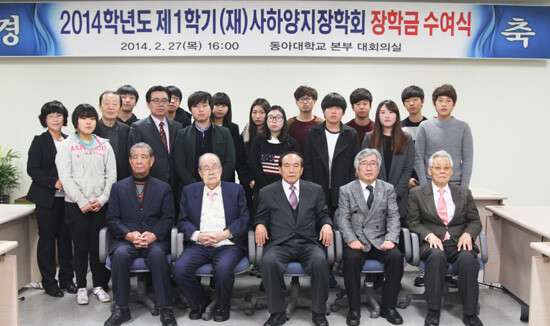 이날에는 동아대생 2명을 비롯하여, 14명의 학생이 장학금 1269만6000원을 받았다.