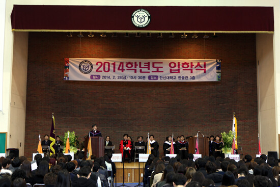 이날 입학식은 채수일 총장의 총장축사, 성악가 김홍태 씨의 축가, 교수 소개, 신입생 대표의 한신명예선언, 장학증서수여 등으로 진행됐다.