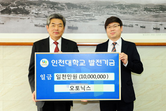 박환기 (주)오토닉스 대표이사는 대한민국을 위해 기여하는 우수한 인재를 양성하는 인천대에 도움이 됐으면 좋겠다면서 발전기금을 전했다.