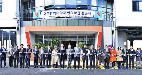 대구한의대는 14일 경산 삼성캠퍼스에서 행복기숙사와 첨단 한의학관 준공식을 가졌다. 이날 준공식에는 기우항 학교법인 제한학원 이사장, 변창훈 대구한의대 총장, 변정환 대구한의대 명예총장, 이원희 한국사학진흥재단 이사장 등 총 200여 명의 내외빈이 참석했다.