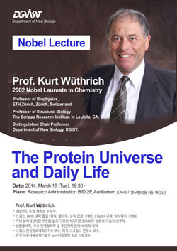 또한 이날 뷔트리히 석좌교수는 ‘단백질의 세계와 일상생활(The Protein Universe and Daily Life)’이라는 주제로 DGIST 기초학부생 및 대학원생, 교직원 300여 명을 대상으로 특강을 진행할 예정이다.