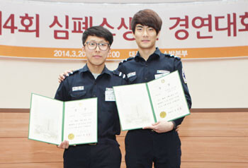 건양대 응급구조학과 2학년에 재학 중인 류영헌, 염대현 씨는 가장 정확하고 신속하게 심폐소생술을 시행했다는 평가를 받아 이번 대회에 최고 점수를 받으며 최우수상의 영예를 안았다.