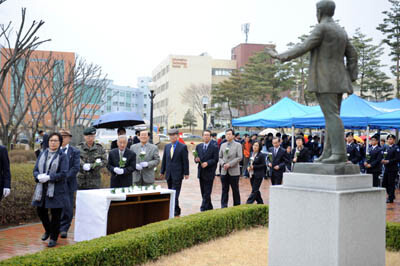 이날 추모식에는 교직원과 학생, 김계남 총동창회장, 대구지방보훈청, 육군3사관학교, 국채보상기념사업회, 광복회, 흥사단, 간도되찾기운동본부 등 관련 기관과 단체 인사를 포함해 총 100여명이 참석해 안 의사의 숭고한 애국애족 정신을 기렸다.