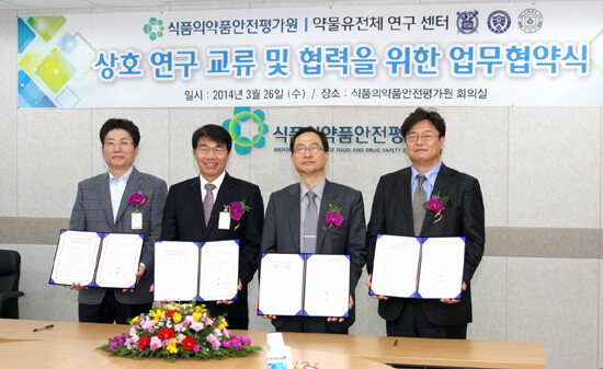 이날 식품의약품안전평가원(충북 청원군 오송)에서 진행된 협약은 △한국인 약물유전체 기반 확대와 개인맞춤약물 요법 개발을 위한 연구 협력 △약물유전체 연구 및 개인맞춤약물 요법 개발과 관련된 정보 공유 △연구 수행에 따른 자문 및 연구자 교환 등 인적 교류 △연구 장비와 인프라 시설의 공동 활용 △공동세미나 및 연구발표회 등 개최에 대한 부분에서 협력과 공동연구를 진행하기로 했다.