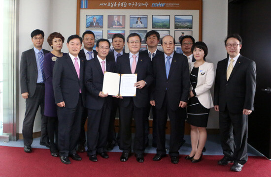 현풍농협 곽병달 조합장 및 관계자는 2일 DGIST를 찾아 신성철 총장 및 DGIST 주요 보직자를 접견한 자리에서 발전기금 약정서 전달식 및 장학후원의 집 명패 전달식을 가졌다.