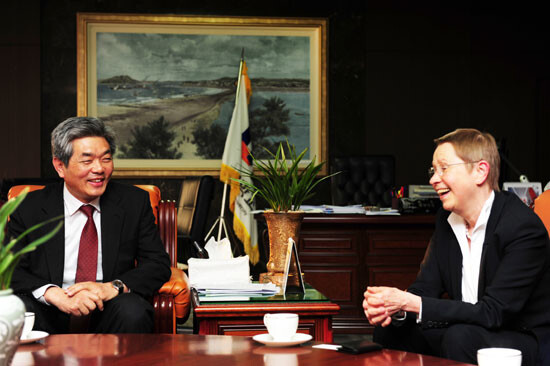 최성을 인천대 총장은 8일 오후 5시 30분 총장실에서 독일 괴팅겐 대학 울리케 바이지겔 총장을 접견하고, 양 대학간 교류 활성화 방안을 논의했다.