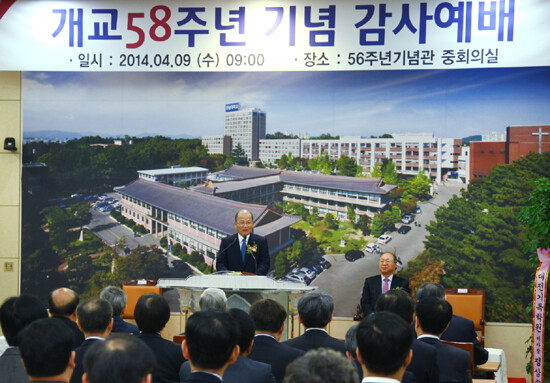 김형태 한남대 총장은 "개교 58주년을 맞는 지금 대학을 둘러싼 환경이 만만치 않다"면서 "그러나 위기를 기회로 변화시키는 한남의 저력으로 한남 100년을 향해 힘차게 달려갈 것"이라고 강조했다.