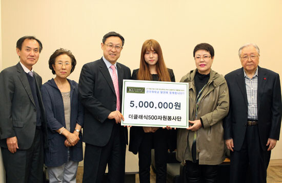 더 클래식 500 입주회원 및 임직원으로 구성된 자원봉사단은 2011년부터 지속적으로 건국대 장학생에게 장학금을 후원해주고 있다. 장학금 수여 대상은 성적이 우수하고, 성실하며, 모범적인 학생으로 학교의 추천을 받아 선정된다.