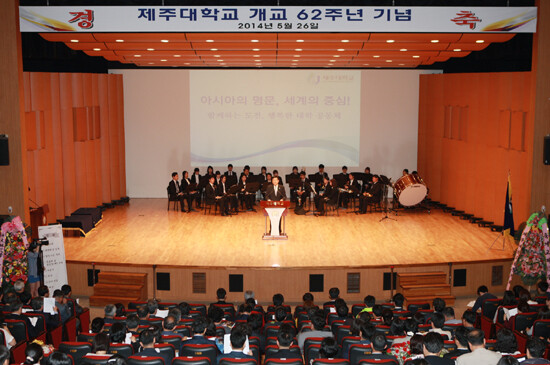 26일 제주대 아라뮤즈홀에서 열린 기념식에서 허 총장은 식사를 통해 "우리가 지향해야할 '아시아의 명문, 세계의 중심'의 대학 발전 비전과 4대 발전 목표를 이뤄내야 한다"며 "이를 위해 대학 모든 구성원들이 각자의 역할에 충실하면서 뜨거운 애교심을 발휘해야 할 필요가 있다"고 강조했다.