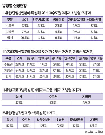 단일 산업분야의 특성화를 추진하는 Ⅰ유형에서는 수도권 대학(1.5대 1)이 지방 대학(1.30대 1)보다 높은 경쟁률을 나타냈다. Ⅰ유형 지원대학의 계열을 보면 자연과학계열이 11곳으로 가장 많고, 공학계열 6곳, 예체능계열 5곳, 인문사회계열 4곳 순으로 나타났다.