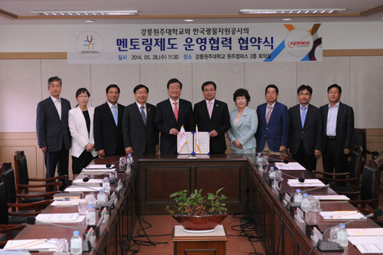이를 위해 양 기관은 28일 강릉원주대 원주캠퍼스 회의실에서 '멘토링 제도 운영 협력'을 체결했다. 이날 협약식에는 전방욱 총장, 고정식 한국광물자원공사 사장을 비롯해 이강후 국회의원, 강릉원주대 왕보현 산학협력선도대학사업단장 등이 참석했다.