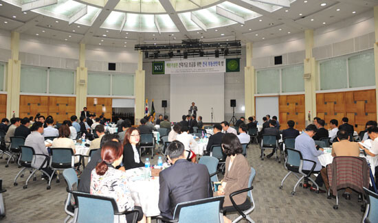 건국대학교 부동산대학원(원장 고성수)은 지난 3일 오후 서울 광진구 능동로 건국대 서울캠퍼스 새천년관 우곡국제회의장에서 송희영 총장과 장성대 부동산대학원 총동문회장, 부동산학과와 대학원 동문 등 300여 명이 참석한 가운데 해봉기념관(부동산학관) 건축기금 모금을 위한 ‘건국 부동산인의 밤'을 개최했다.