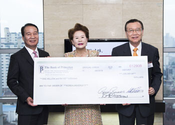 이날 이 회장은 발전기금을 고려대와 미국 조지워싱턴대의 학술교류를 위해 써달라고 밝혔다.