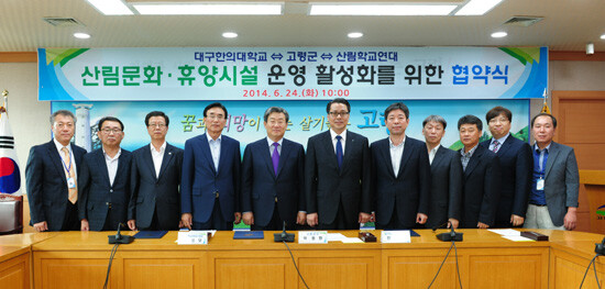 24일 고령군청에서 열린 이날 협약식에는 변창훈 대구한의대 총장, 곽용환 고령군수, 서정모 산림학교연대 회장이 참석했다.