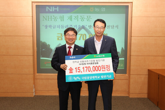 이들은 지난해 7월 25일 경상대가 장학금 되돌려주기 운동을 선포할 때 동문 개개인으로부터 성금을 모아 1억 원을 출연하기로 약정한 바 있다. 동문회 중 가장 많은 금액을 가장 먼저 약정한 것이다.