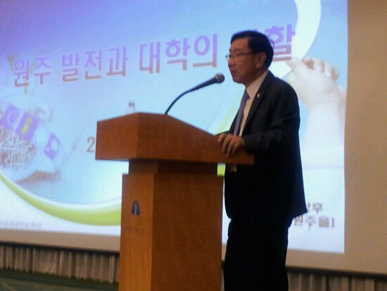 이번 교원연수에서는 새누리당 이강후 의원의 특강이 진행됐다. 이 의원은 '원주 발전과 대학의 역할'이라는 주제로 특강을 했다.