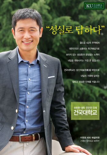 건국대는 2015학년도 대입 수시 모집을 앞두고 제작한 '성실로 답하다'라는 주제의 광고에 건국대 정치외교학과 96학번인 이 해설위원을 모델로 기용했다.