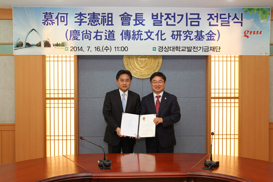 경상대는 16일 모하(慕何) 이헌조(李憲祖) 전 LG전자 회장으로부터 ‘경상우도 전통문화 연구기금’으로 5억 원을 기부 받았다.
