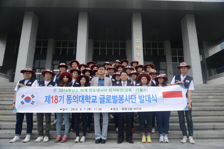 이번에 파견하는 동의대학교 제18기 글로벌봉사단은 학생 27명과 교직원 3명 등 모두 30명으로 구성되었으며, 8월 13일부터 27일까지 15일간 인도네시아 수라바야시의 5개 고등학교 학생 500여명을 대상으로 교육프로그램과 문화교류프로그램 등의 다양한 봉사활동을 펼칠 계획이다.