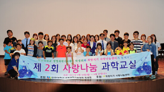 인천대학교 생명과학기술대학(학장 배양섭)과 생명과학기술대학 학생회(회장 엄태산)가 '사랑나눔 과학교실'을 운영한다.