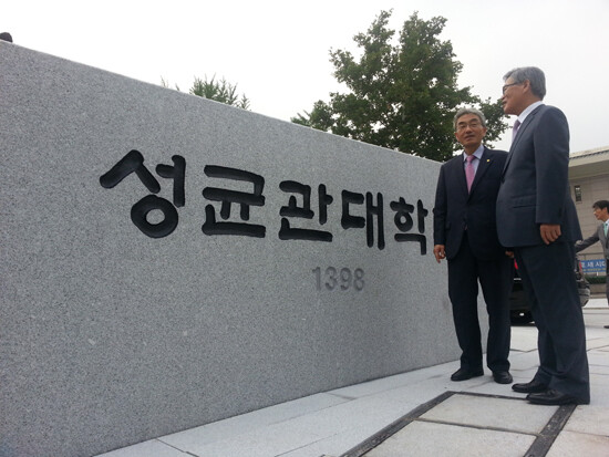 이번에 새롭게 단장한 성균관대 교문은 지난 600여년의 역사를 품고 또다른 미래 600여년의 글로벌 리딩 대학으로서의 면모를 갖추기 위해, 기존의 벽돌식 문주(門柱)를 헐고 자연석(自然石)에 학교 이름도 한자(漢字)가 아닌 한글로 명기(明記)했다.