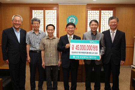 물리학과장 김현수 교수는 “물리학과는 20여년 동안 학과 교수들의 친목과 장학사업을 위해 기금을 모아왔다”면서 “이번에 김건호 교수의 정년퇴임을 맞아 교수 1인당 500만 원씩 총 4500만 원을 학과발전과 더불어 대학발전에 효과적으로 사용할 수 있도록 대학 발전기금으로 기부하게 되었다”고 말했다.