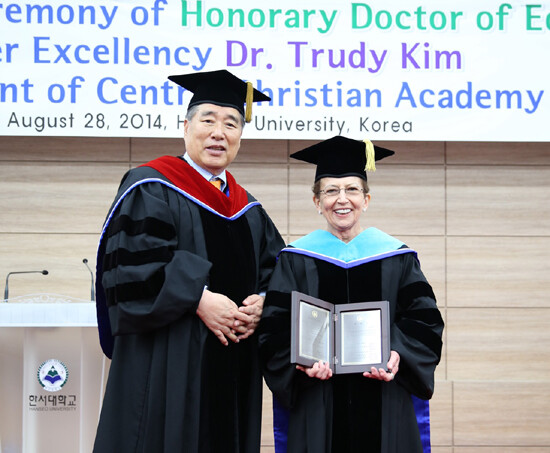 한서대학교(총장 함기선)는 트루디 김 중앙기독유치원장에게 명예교육학박사학위를 수여했다.
