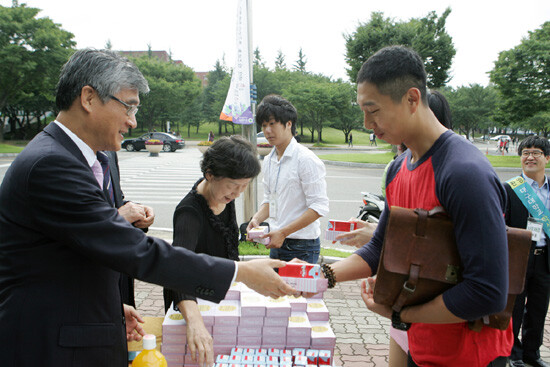 지난 7월 새로 취임한 홍덕률 총장은 정문에서 새 학기를 시작하는 학생들에게 일일이 인사를 건네며 반갑게 맞았다. 캠퍼스에 들어선 학생들도 예상치 못한 이벤트에 놀라면서도 이내 환한 얼굴로 화답하며 감사함을 표했다.