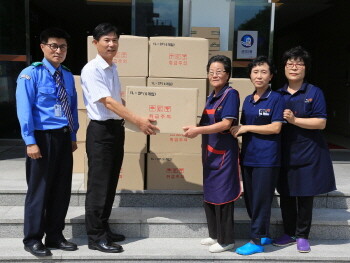 동국대는 추석을 앞두고 지난 4일 대학본관 앞에서 용역 근로자 215명에게 추석맞이 생활용품을 전달했다.