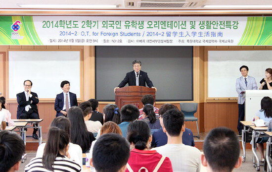 이어 열린 오리엔테이션에서는 국제협력처 직원 및 한국어 교사 소개와 더불어 한국생활에 필요한 유학생활 정보, 건강보험 및 건강검진 등을 안내했다. 또한, 대전 서부경찰서 이배희 팀장이 내방해 범죄예방교육을 진행했다.